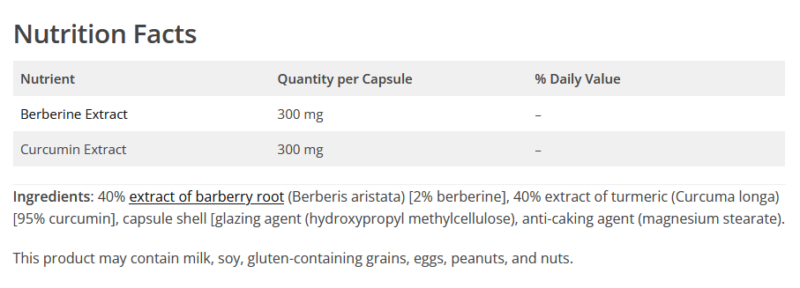 Servings Per Container: 90Berberine + Turmeric Recommended Use: