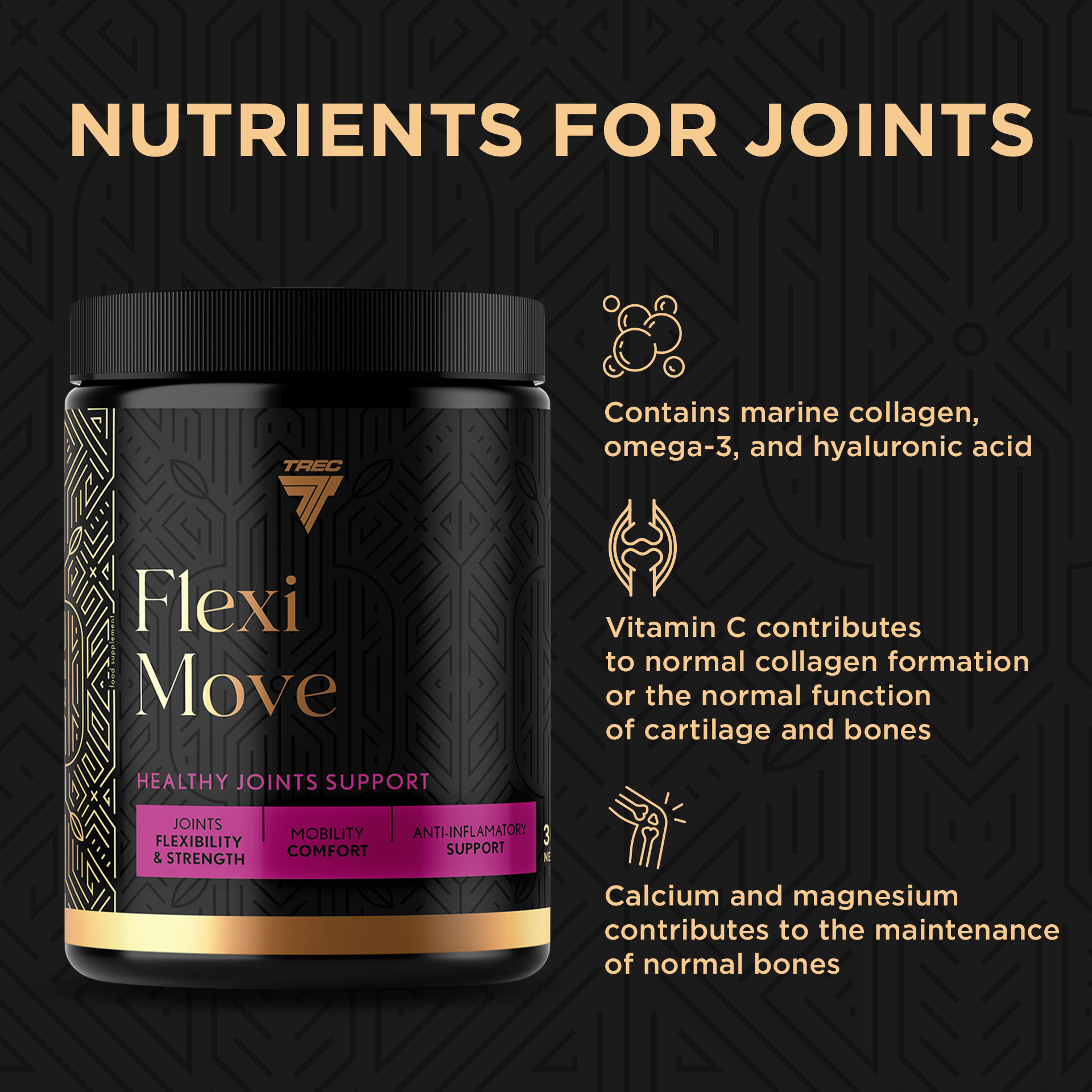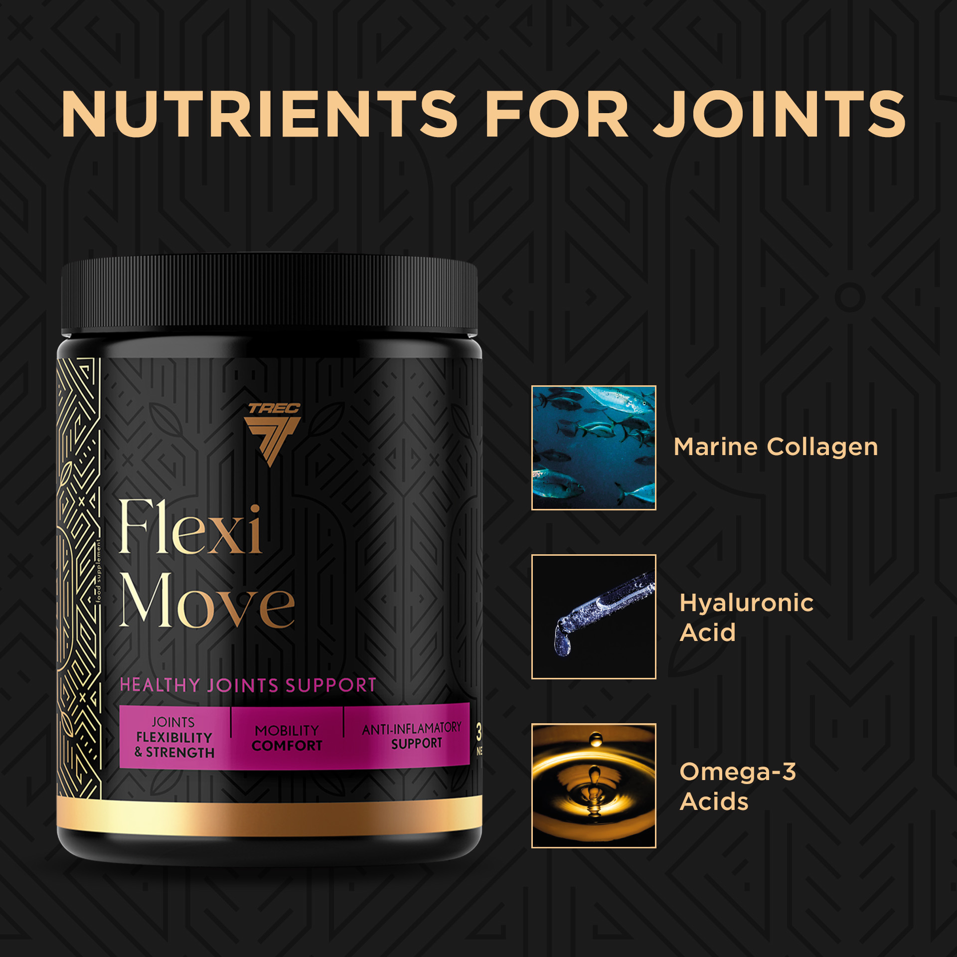 NUTRIENTS FOR JOINTS. FLEXI MOVE contains marine